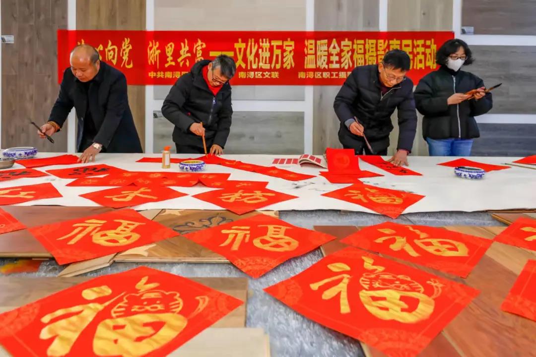 春節臨近,年味漸濃。為了響應省、市文聯(lián)的號召,近日,南潯區區總工會(huì ),南潯區區委宣傳部,南潯區區文聯(lián),南潯區區書(shū)法協(xié)會(huì ),及各位書(shū)畫(huà)家赴紅木枋地板廠(chǎng)舉辦藝心向黨 浙里共富——文化進(jìn)萬(wàn)家,溫暖全家福攝影惠民活動(dòng),為紅木枋員工造影留像,書(shū)寫(xiě)春聯(lián)、福字,并送上了新年的祝福。