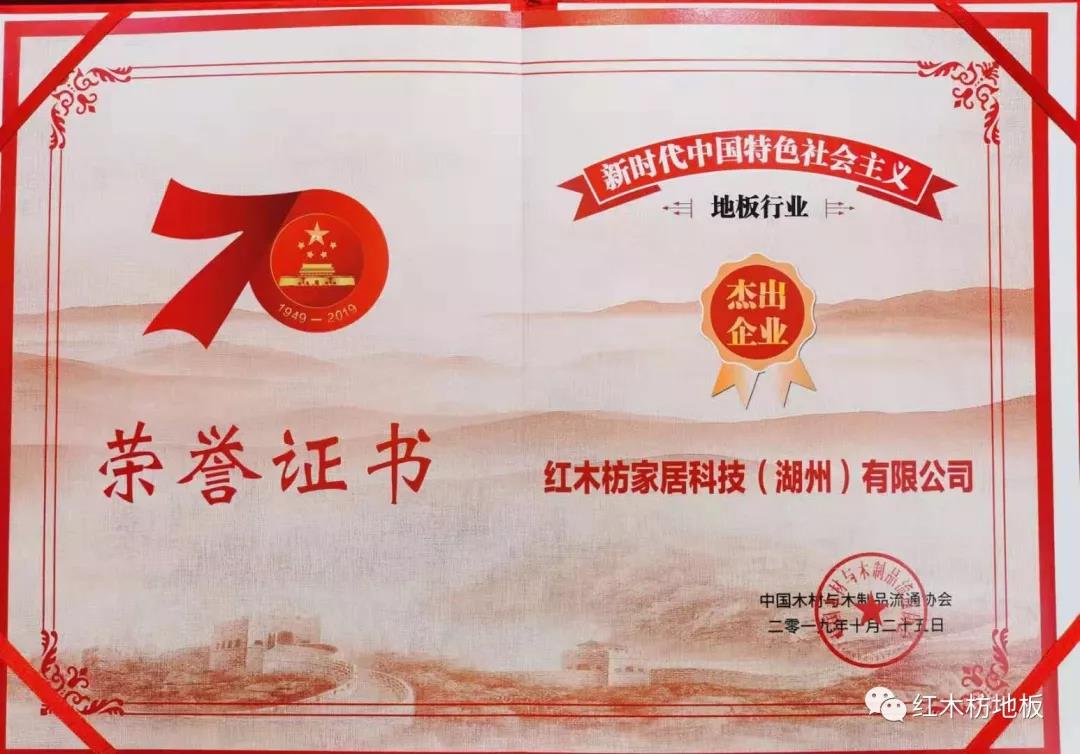 2019年10月25日,由中國木材與木制品流通協(xié)會(huì )和湖州市人民政府共同主辦的“2019世界木地板大會(huì )暨第六屆南太湖論壇”在浙江湖州盛大召開(kāi)。紅木枋地板應邀出席大會(huì ),并榮獲“新時(shí)代中國特色社會(huì )主義地板杰出企業(yè)”,董事長(cháng)張超斬獲“新時(shí)代中國特色社會(huì )主義地板杰出人物”大獎。